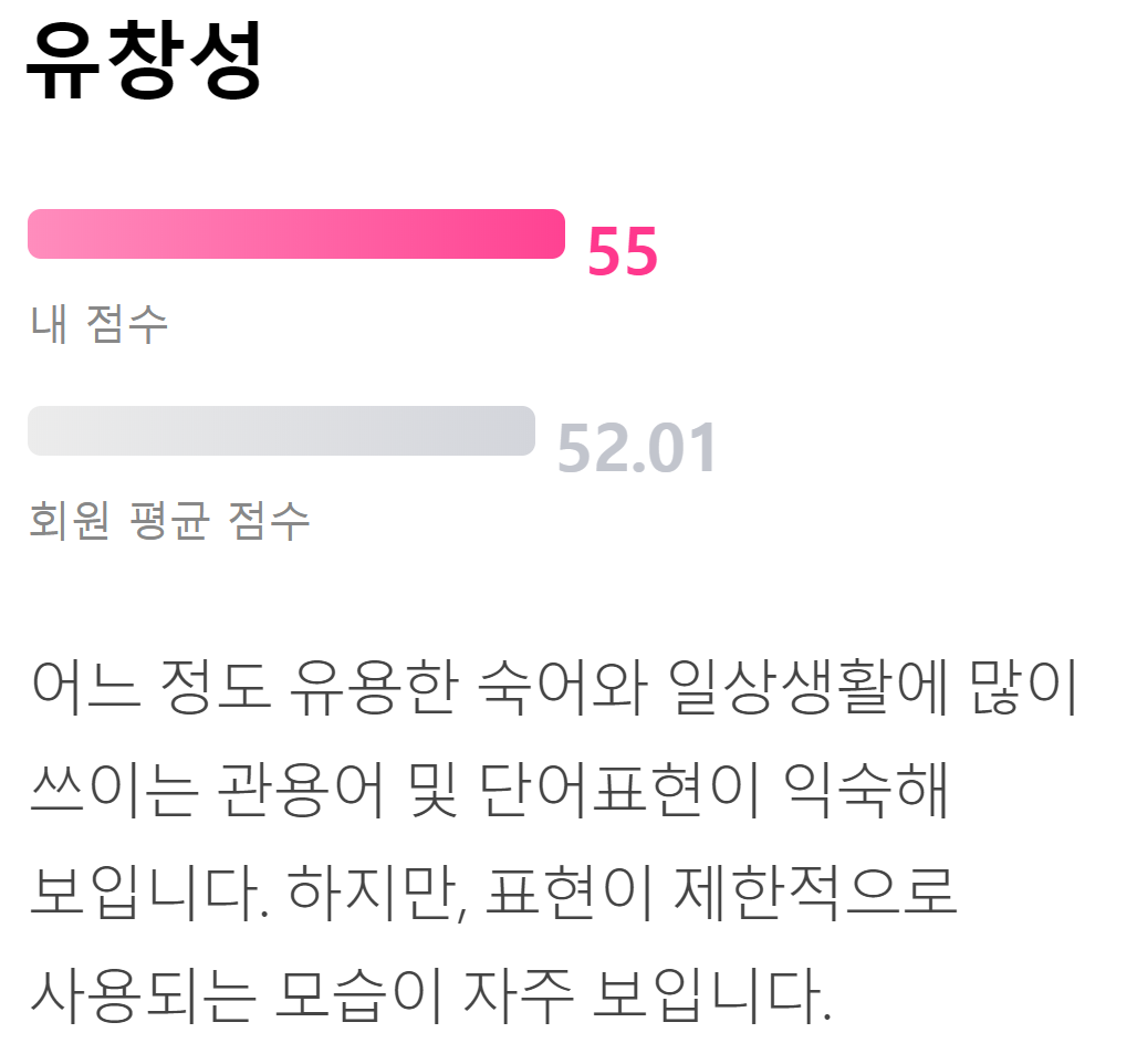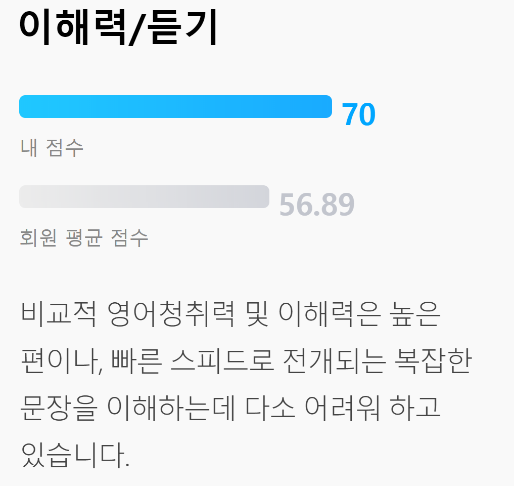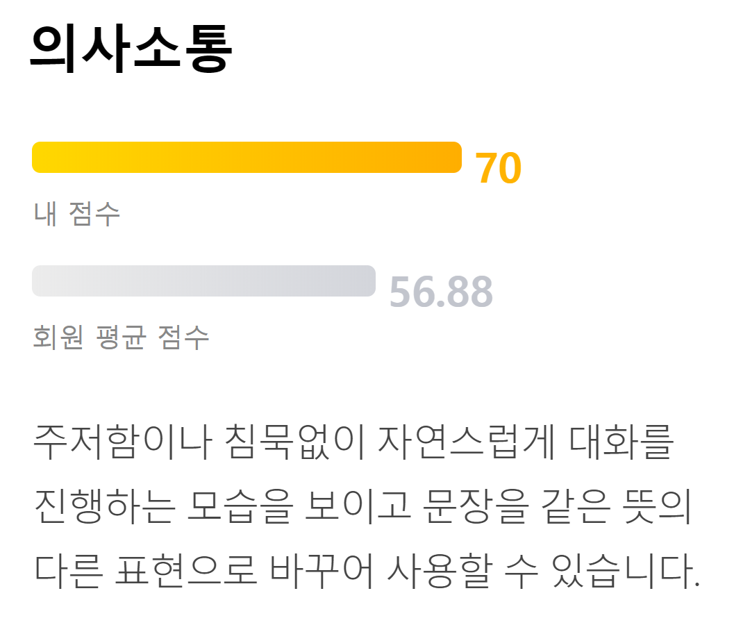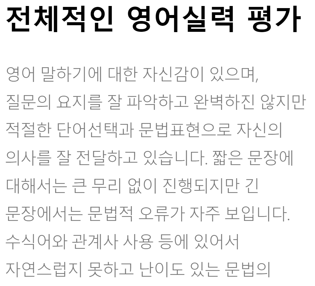 <나의 레벨테스트 결과 & 나의 개선방향 및 개선점>