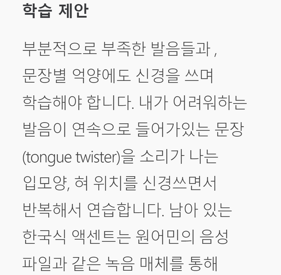 발음을 신경쓰며 하나하나 입 밖으로 내고자 했는데