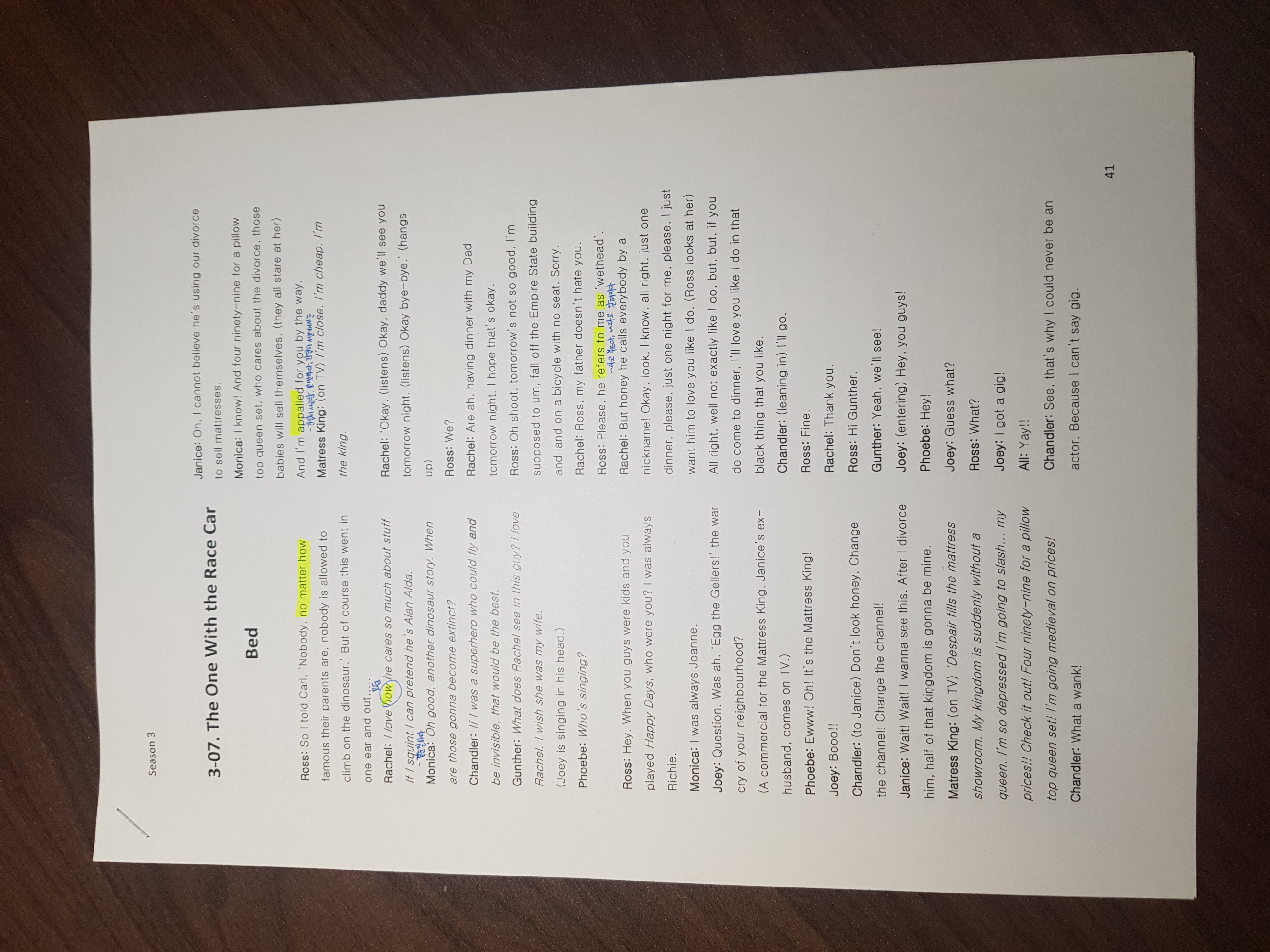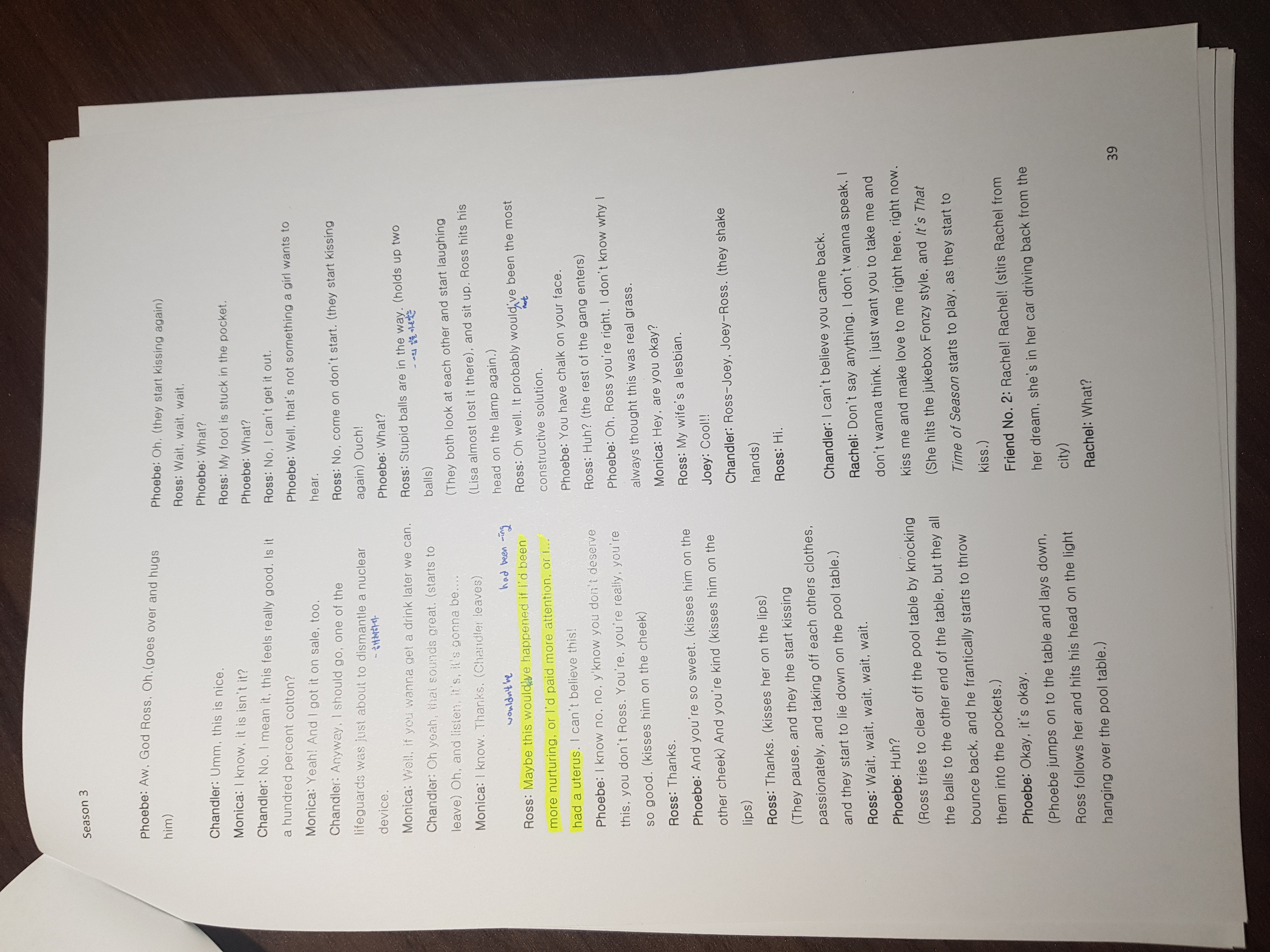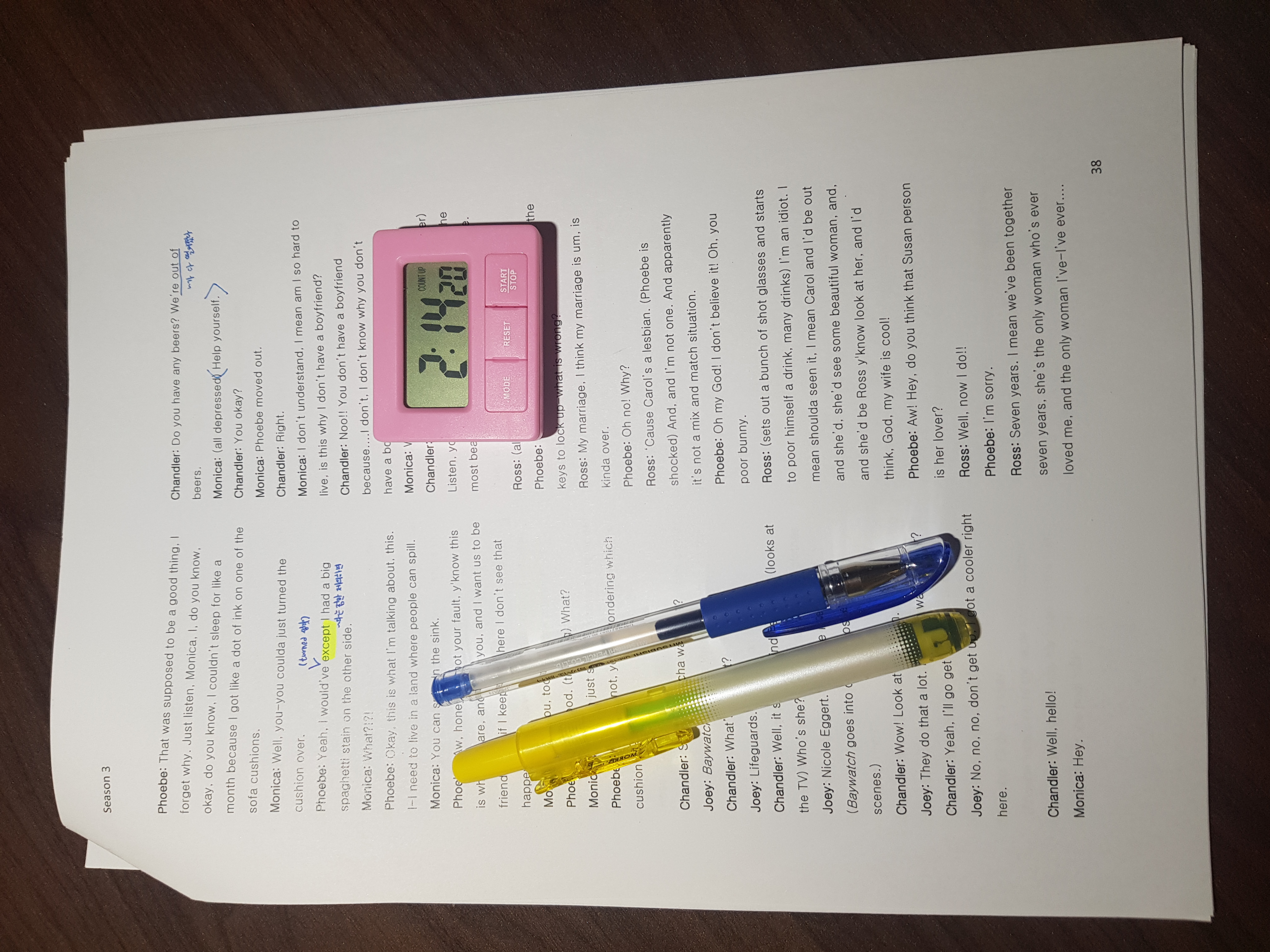 <미드 프렌즈 시즌2 에피소드06 라이팅> 여태까지 문장을 변형해서 공부했는데 안 볼 것 같아서 이제는 그냥 스크립트에 있는 문장만 적어두고 진짜로 실제 사용할 수 있는 문장 몇 개만 가져가겠다 계속 듣고 말..
