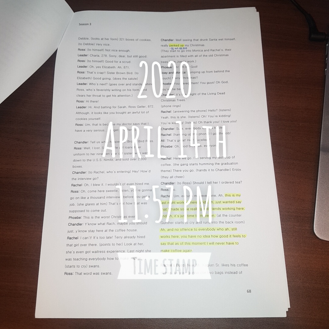 | 하루종일 한 건 없지만 프렌즈 쉐도잉 4시간은 채웠다 (0) | 2020.04.14 |