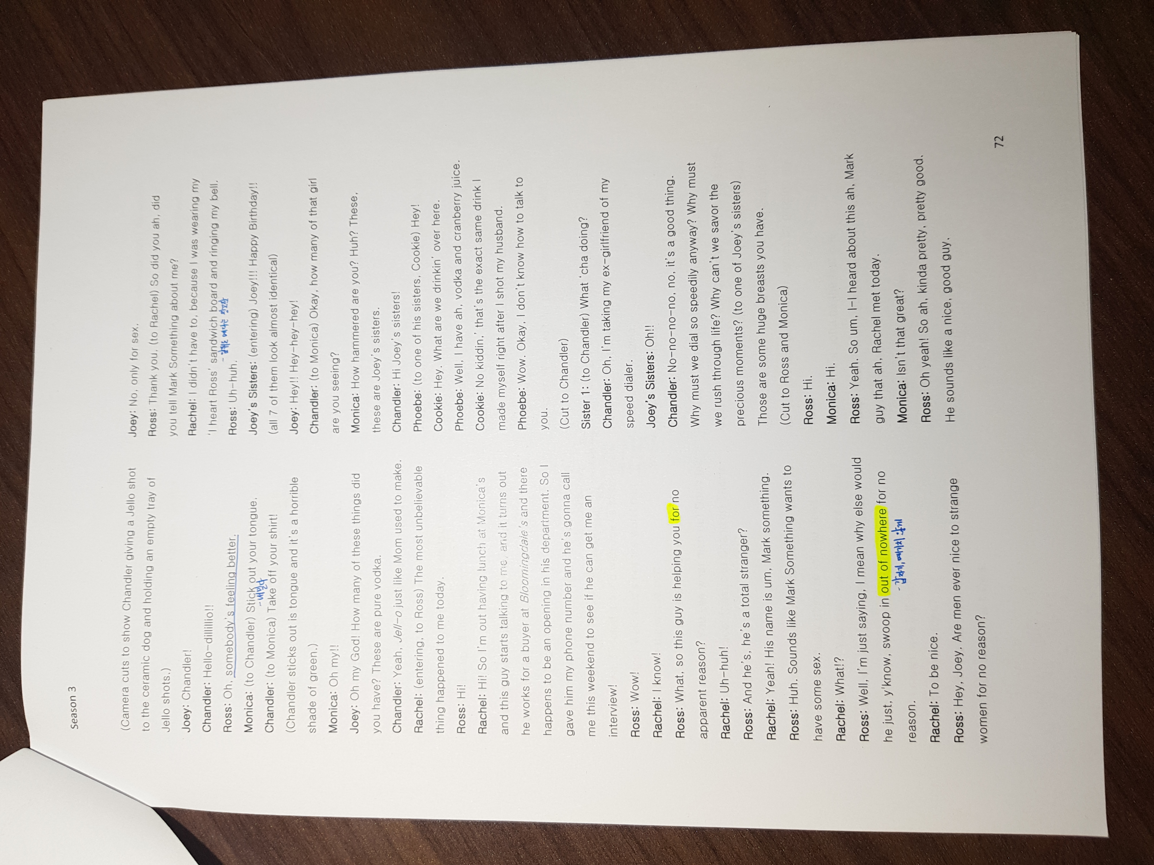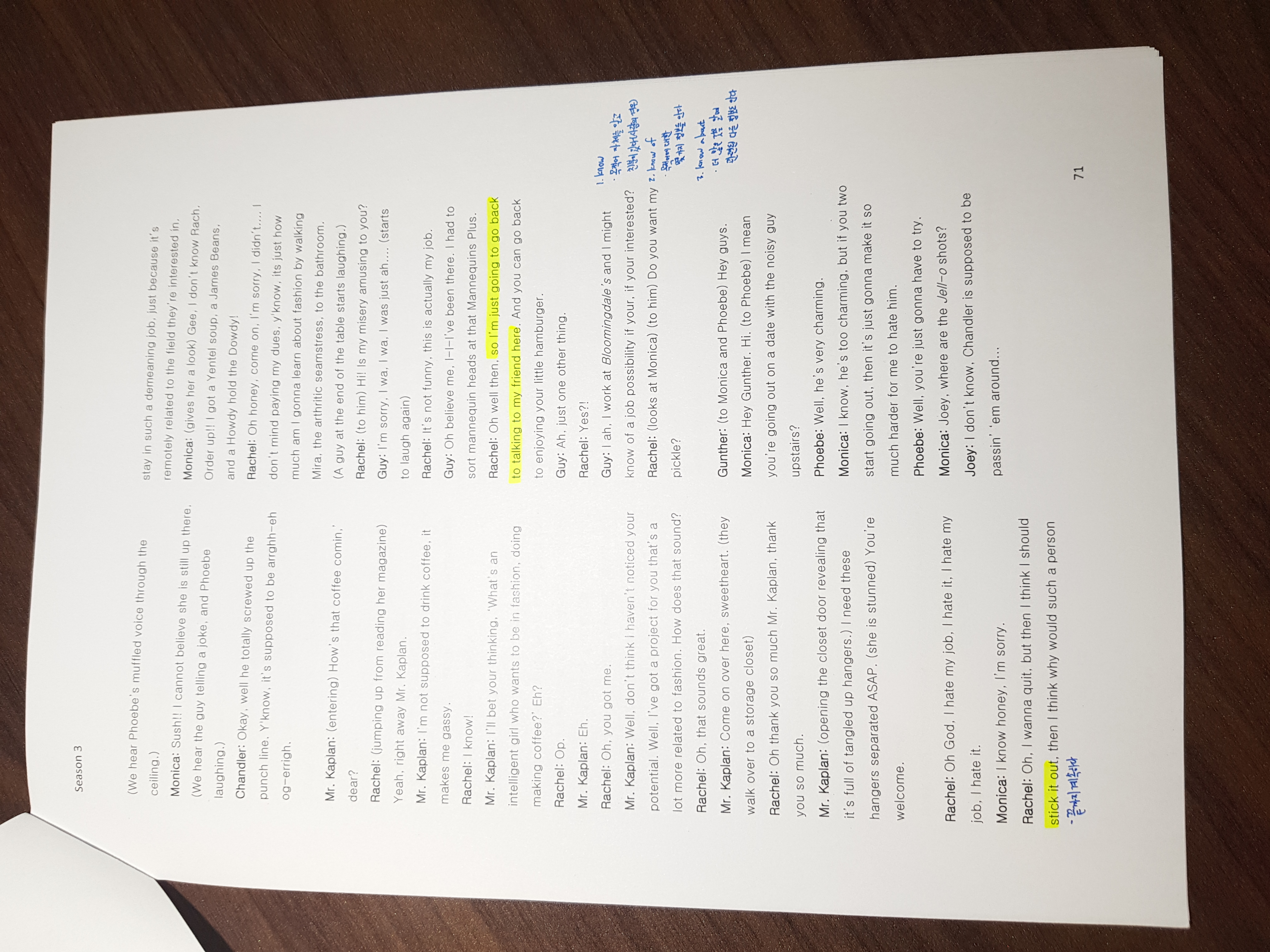 -오늘 하루종일 시간 있었는데 저녁 6시 30분까지 프렌즈 쉐도잉 3시간하고