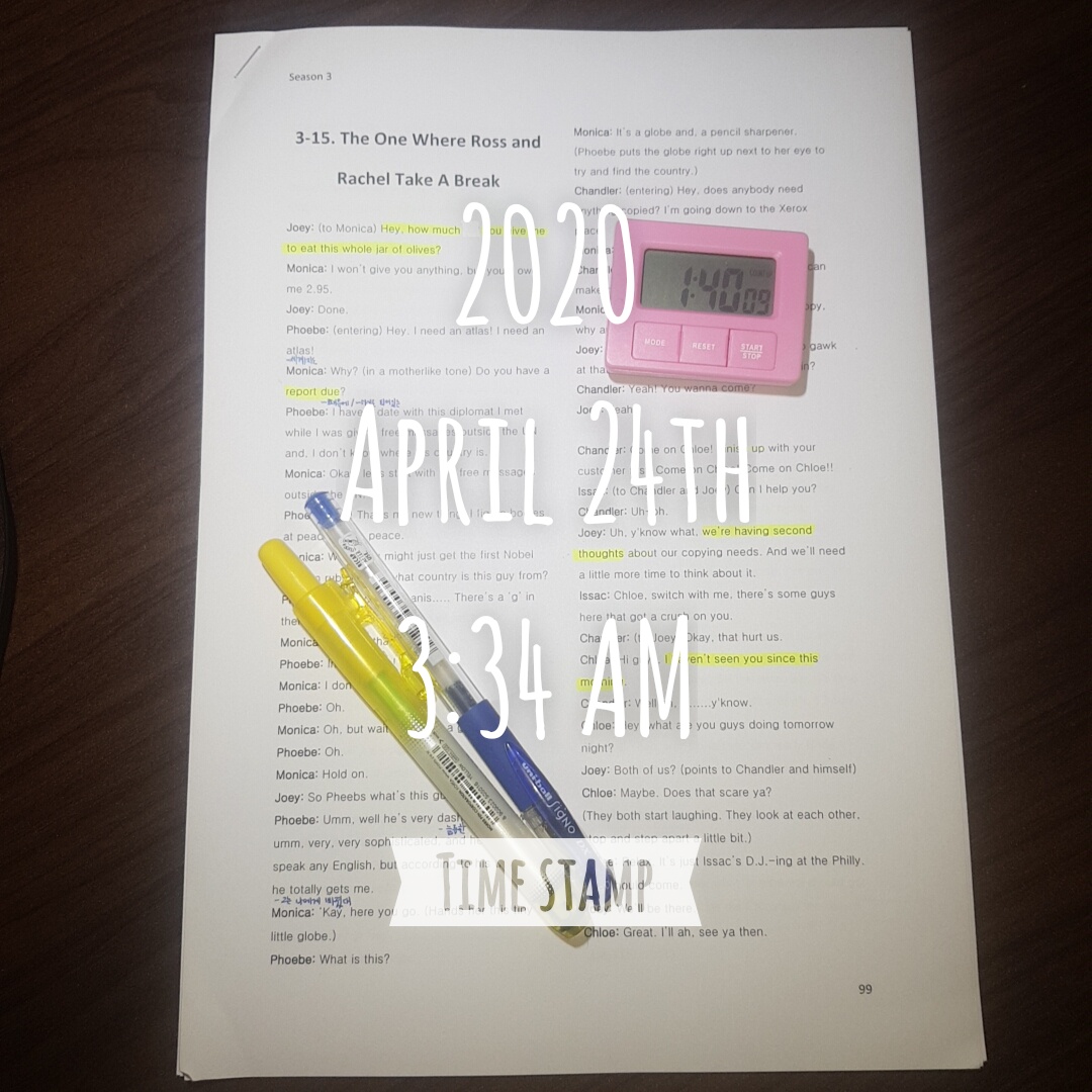 | 이틀 동안 총 4시간 30분 미드 프렌즈로 영어공부 (0) | 2020.04.22 |