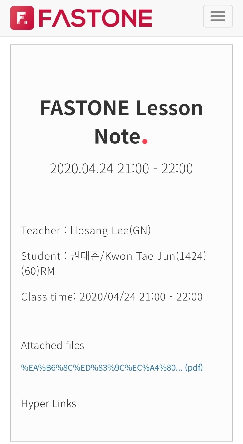 <FASTONE Lesson Note with Hosang Lee teacher>
