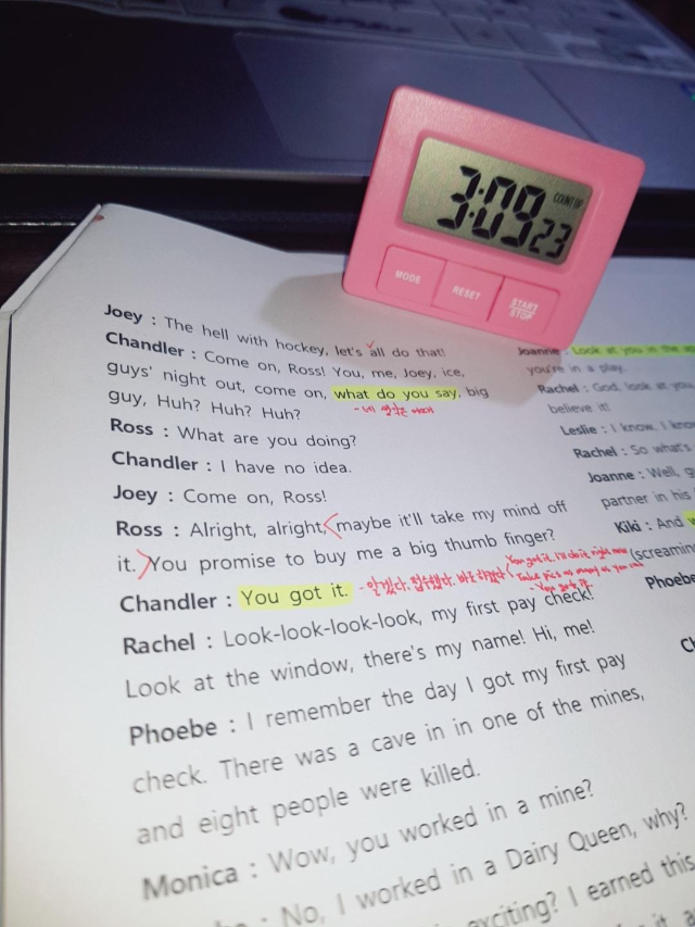 : 대본공부는 문장 쉐도잉을 하면서 모르는 단어나 숙어가 나오면 그때 찾아보는 게 좋다