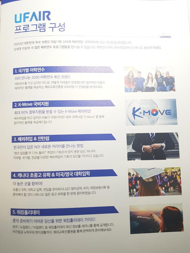 대부분 사설업체들이 나와서 학생들 상담해주는 느낌이었다. K-Move는 정부 지원을 받는 사업인 듯?