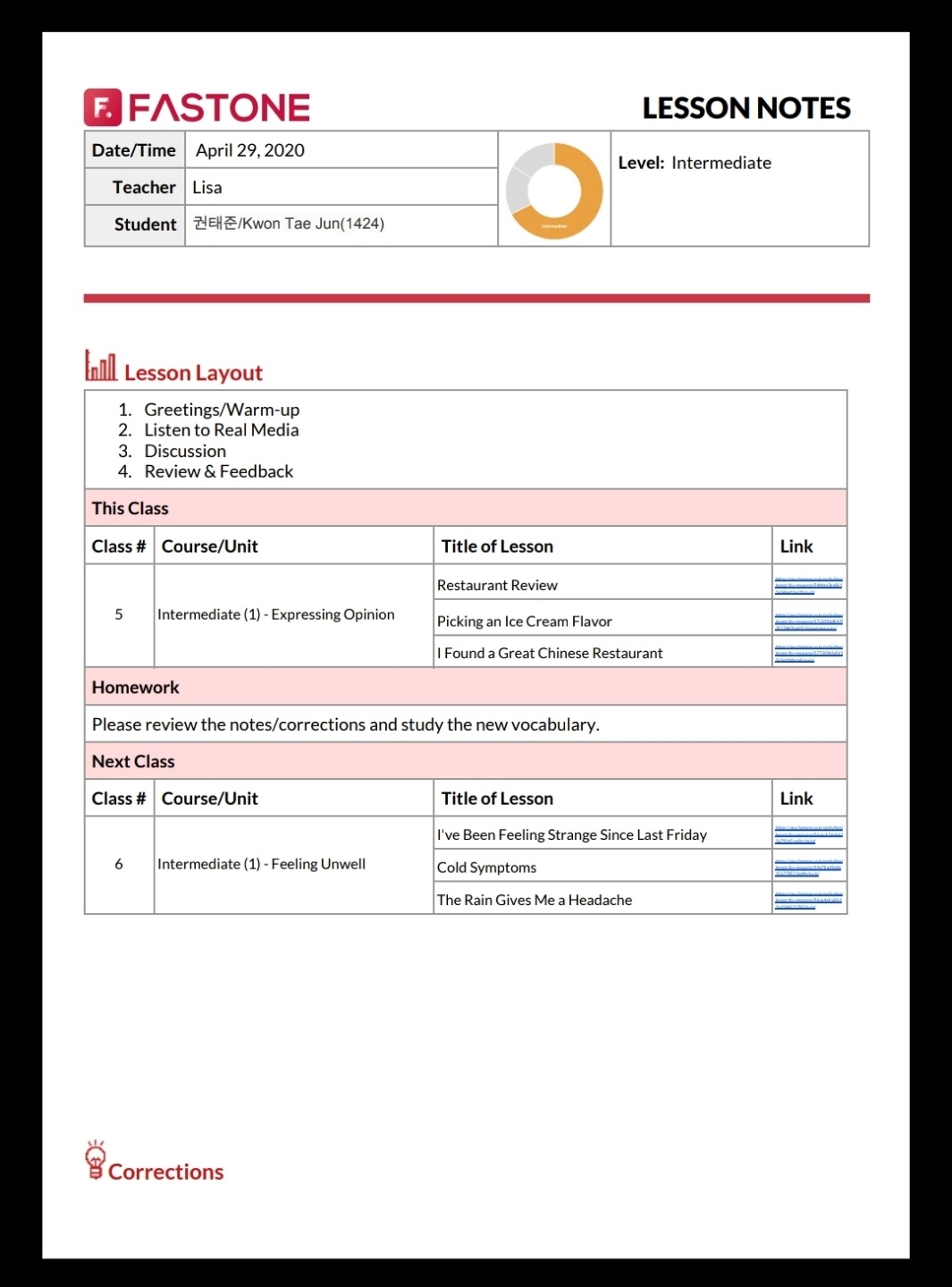 전에 전화영어 레벨테스트를 받았을 때 선생님이 발음을 지적하셨는데