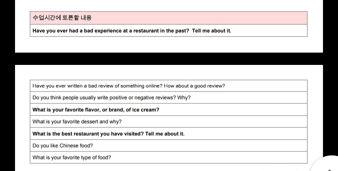 저번 시간에 수업을 진행하는 대신에 일상 대화를 나눴는데