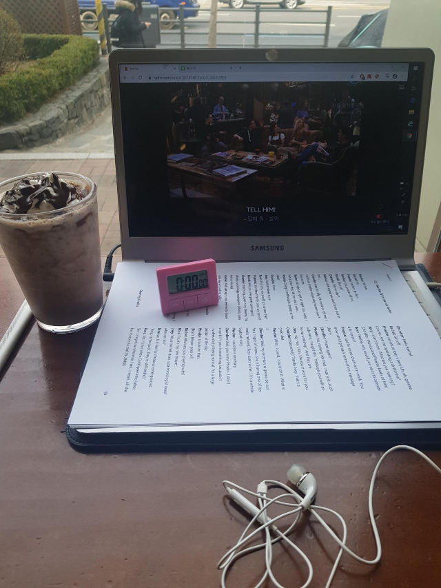 노트북과 대본, 스톱워치와 자바칩 프라푸치노!