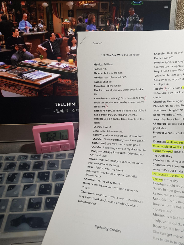 | 1달 만에 프렌즈 시즌1 모든 에피소드 쉐도잉 완료 (4) | 2020.02.24 |