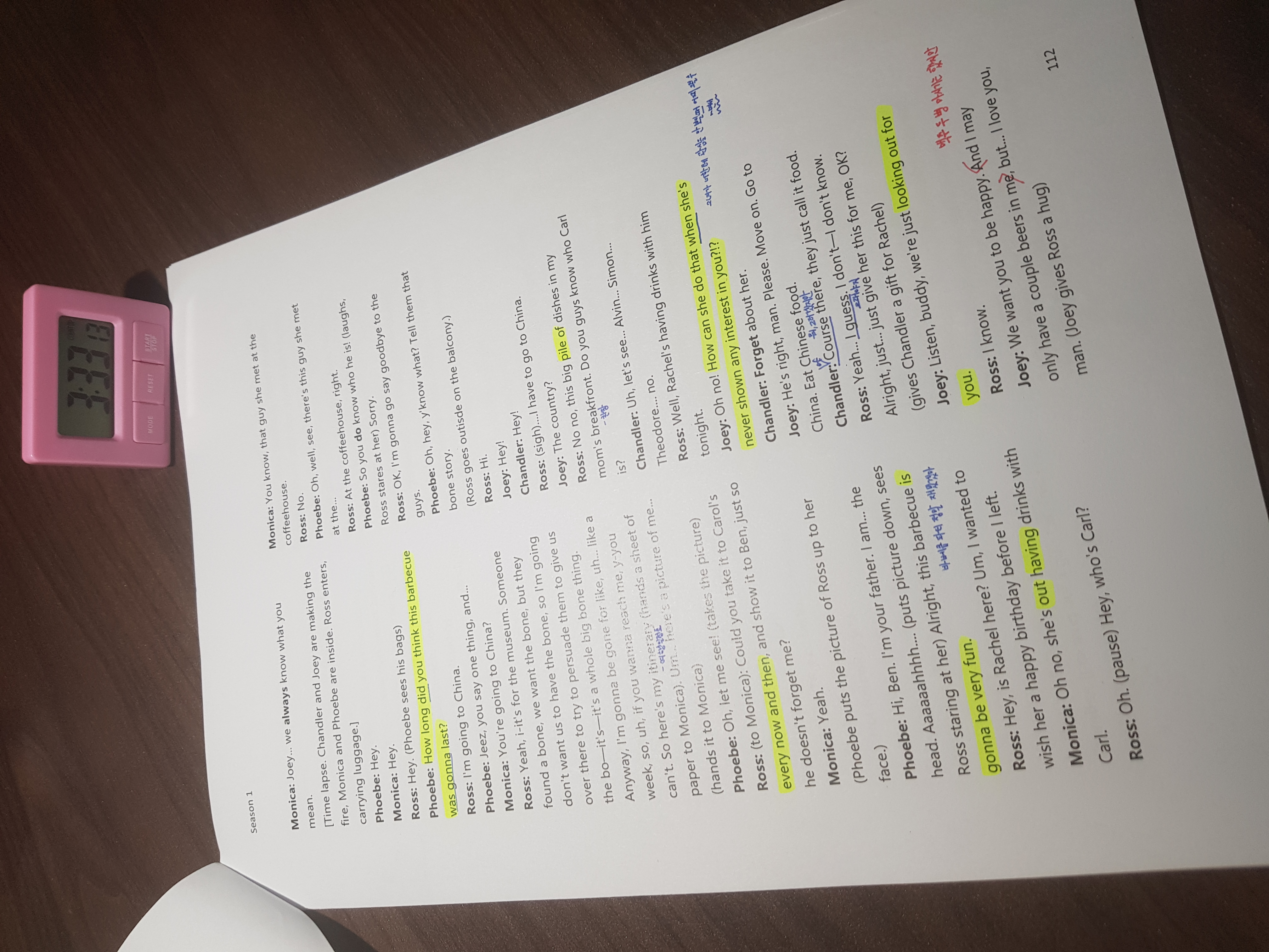 이제 프렌즈 시즌1 쉐도잉까지 단 하나의 에피소드만이 남았다.