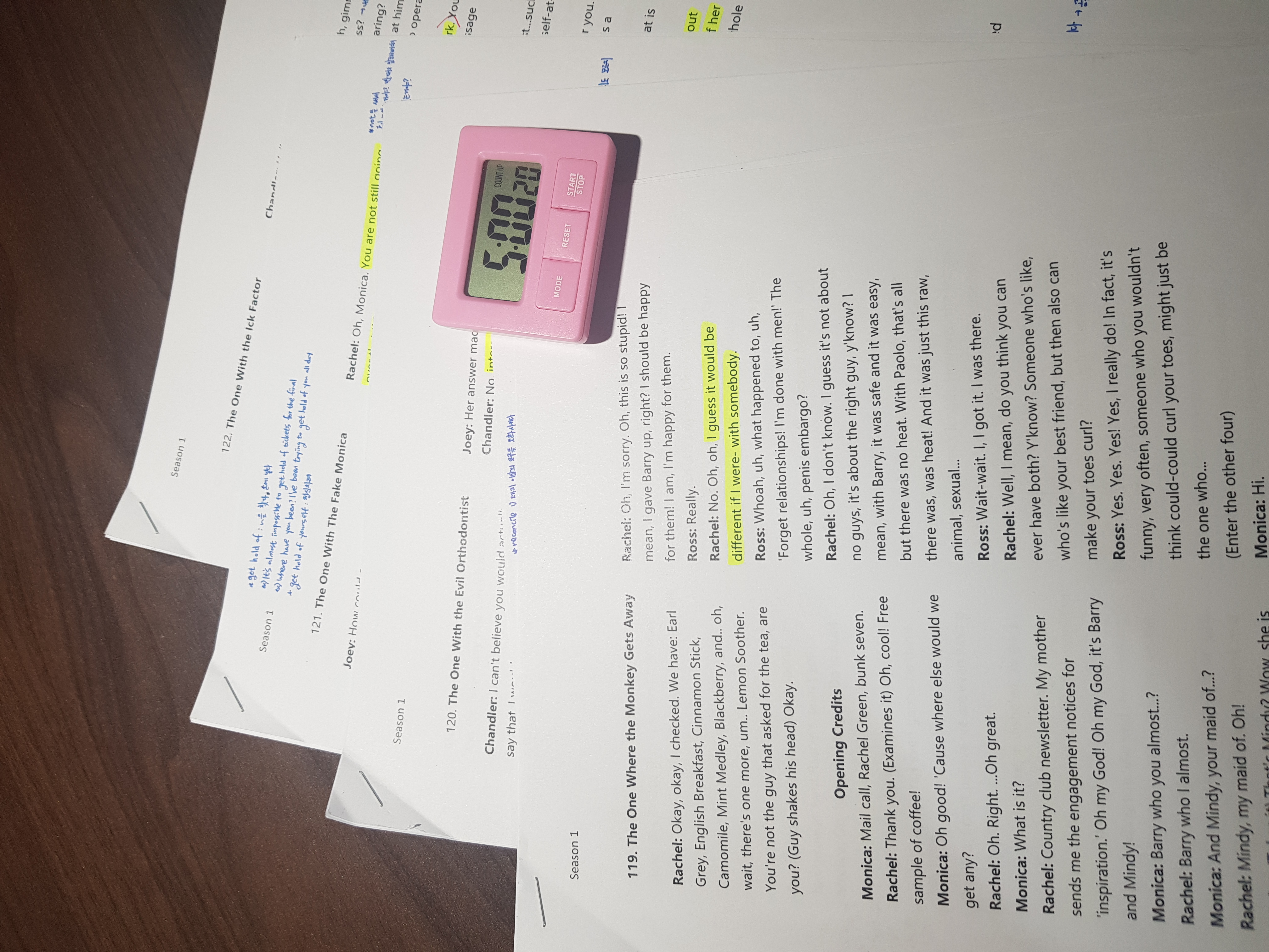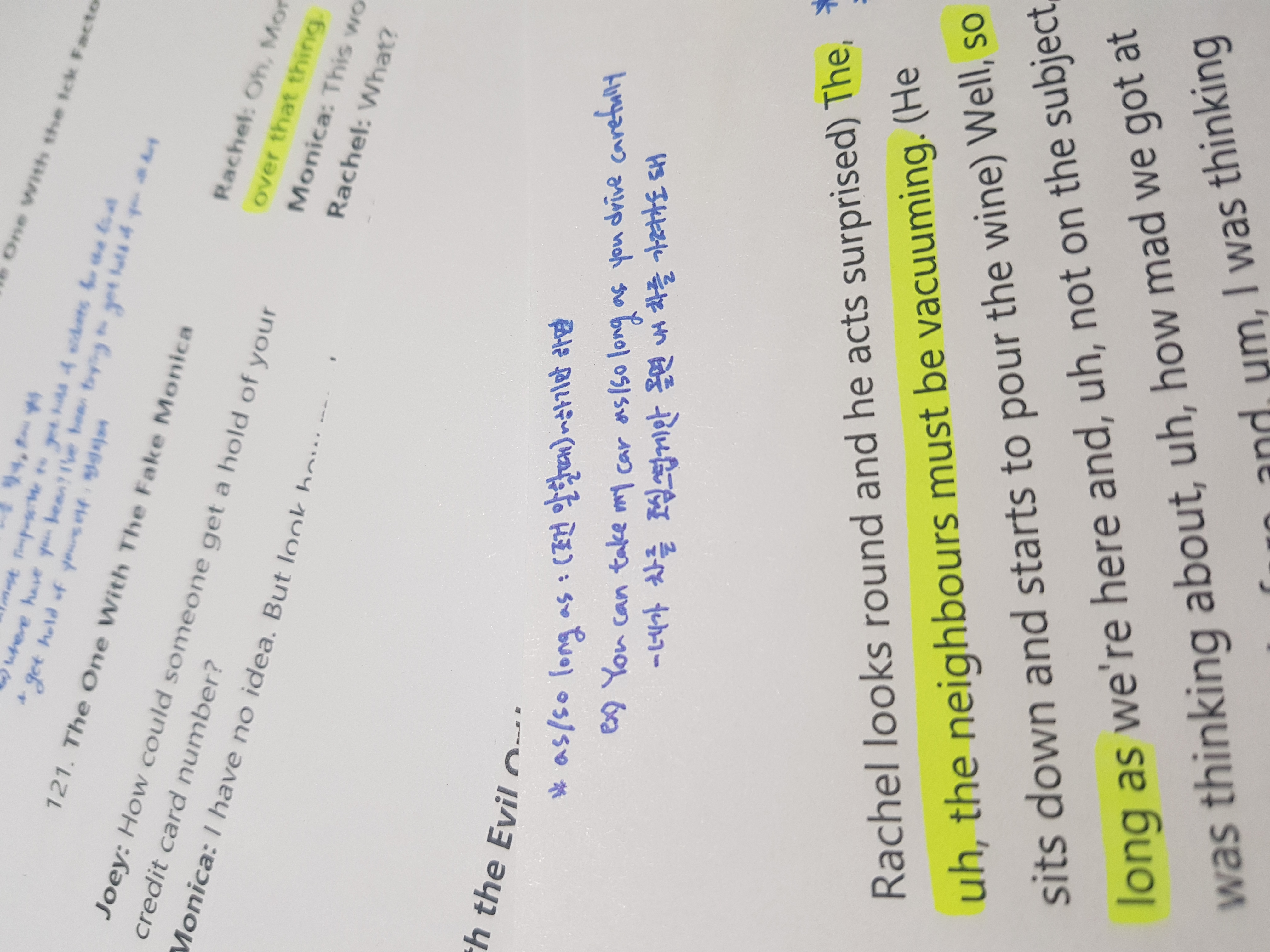 오늘 하루 대본공부한 미드 프렌즈 대본!