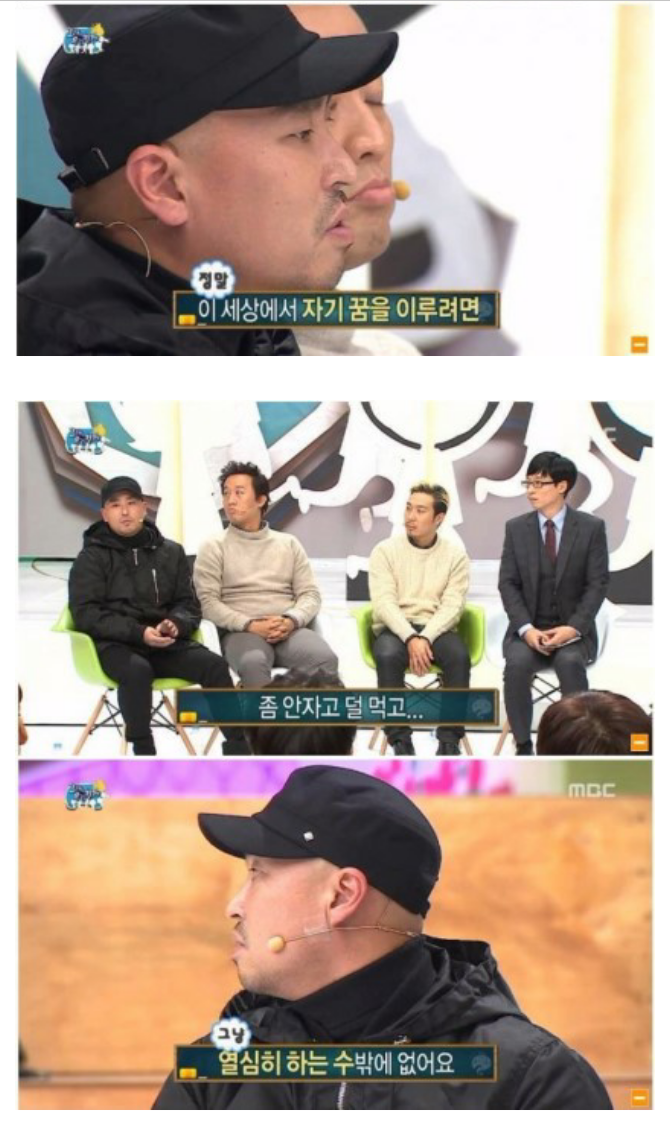 "진짜 이 세상에서 자기 꿈을 이루려면 좀 안자고 덜 먹고,, 그냥 열심히 하는 수밖에 없어요"