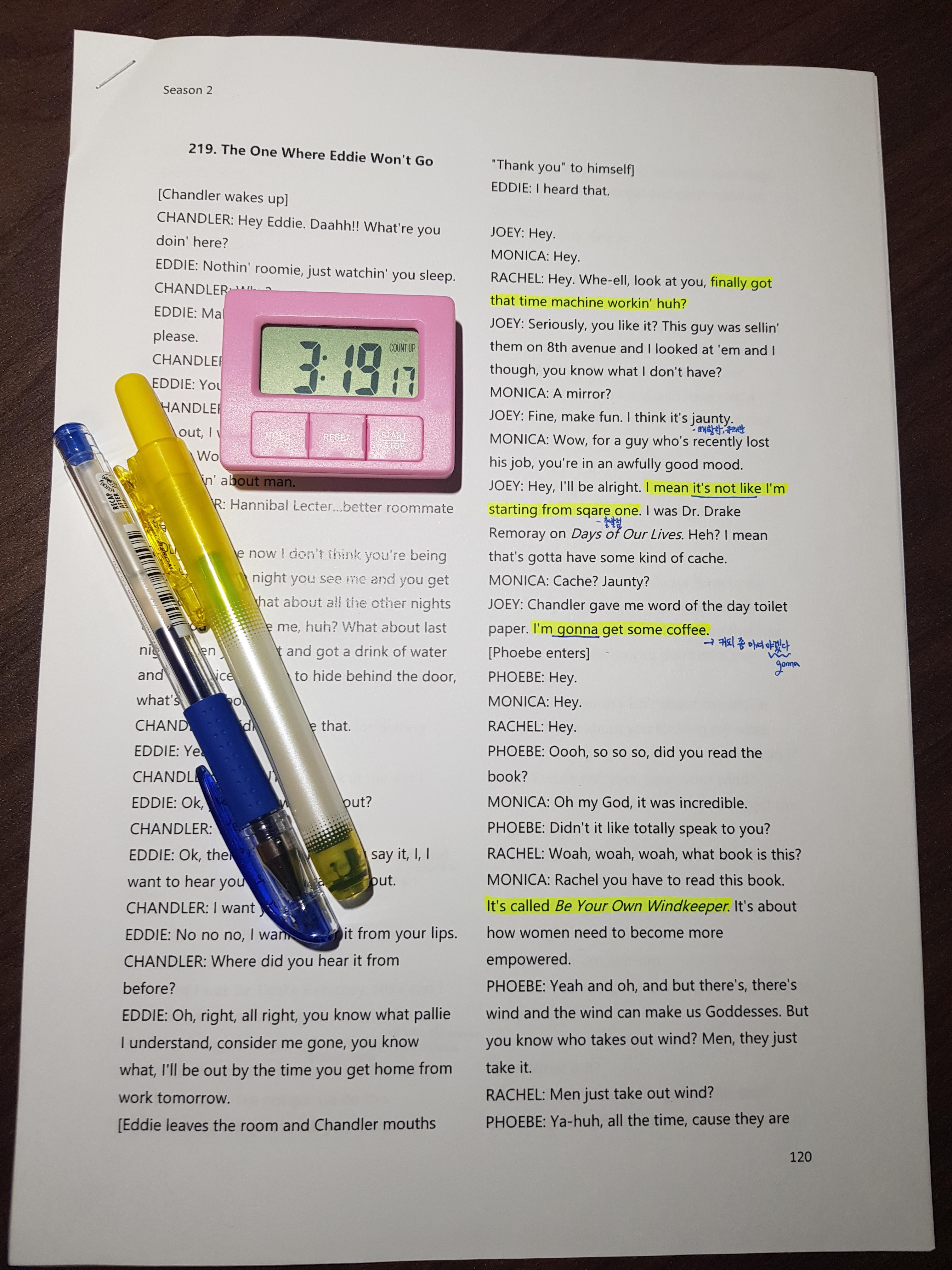 | 프렌즈 하루에 에피소드 2개 쉐도잉 완료 (0) | 2020.03.12 |