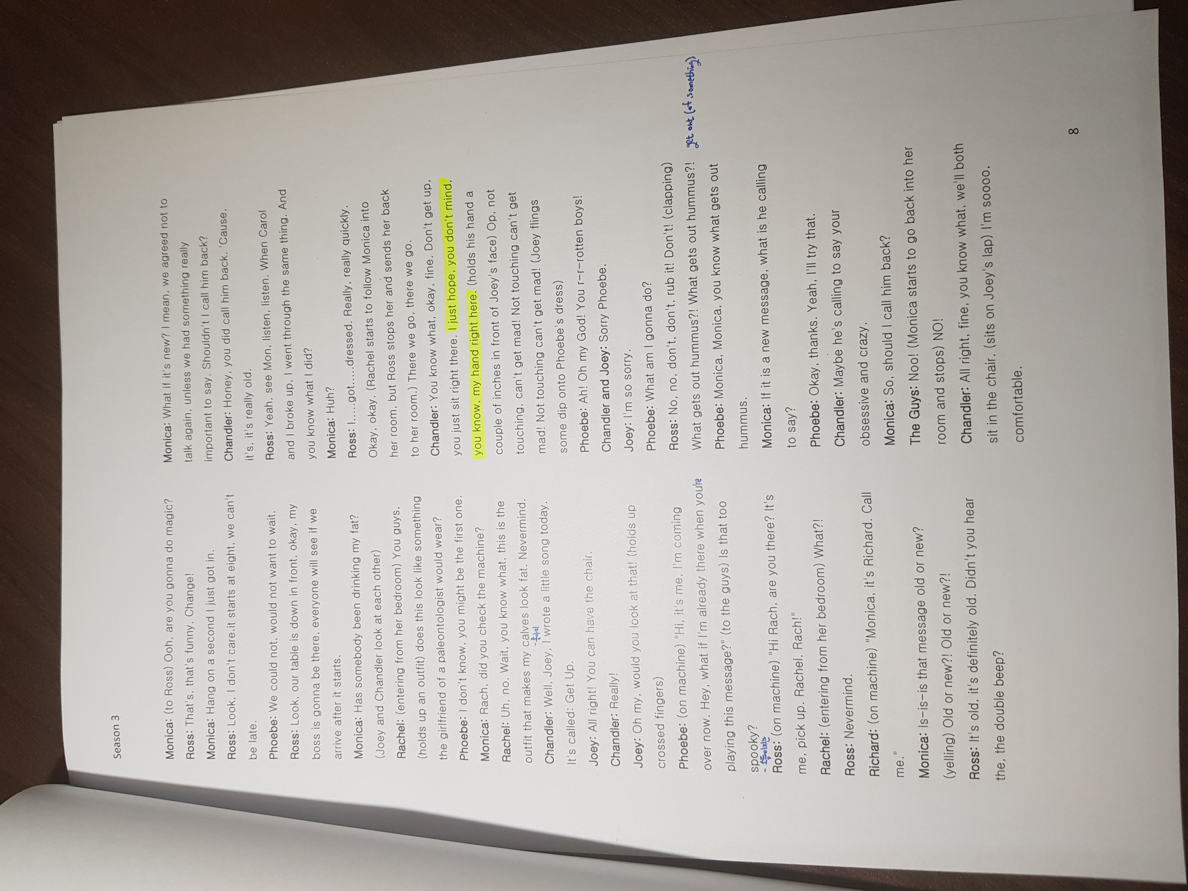 <미드 프렌즈 시즌1 에피소드07 라이팅> 프렌즈 시즌1 EP06에 나온 모든 문장 중에서 실전에서 쓸 만한, 그리고 괜찮은 단어와 숙어가 있으면 정리하고 나의 실생활에 맞게 직접 변형해서 연습해야겠다. 계속 듣고..